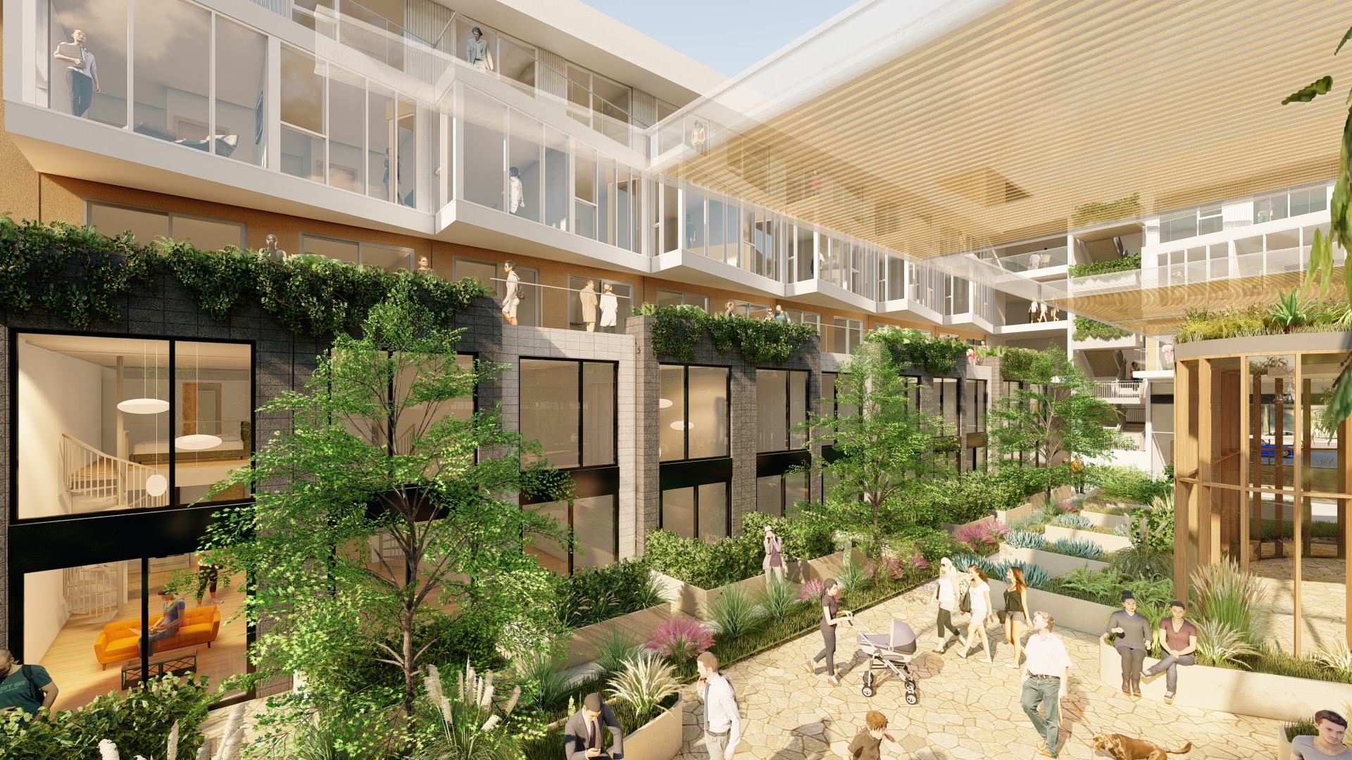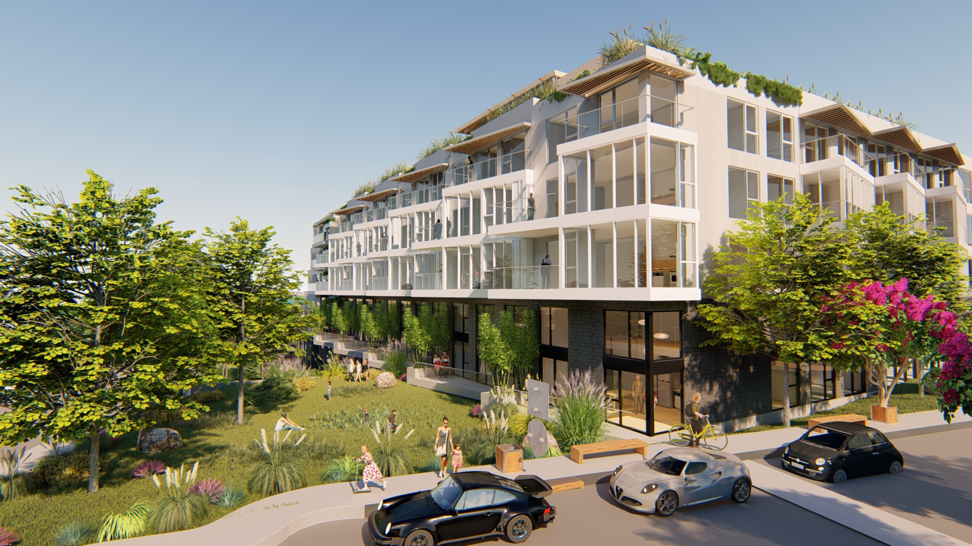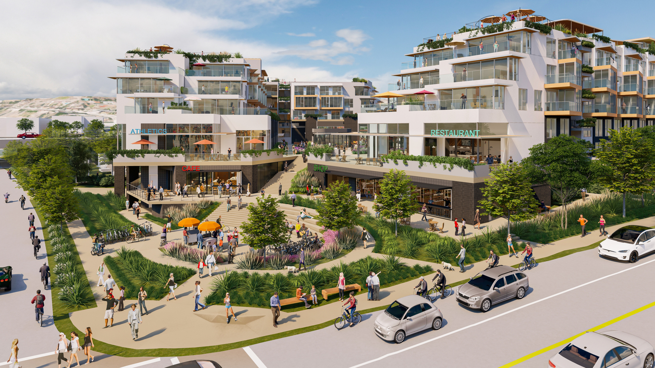 Bayview Plaza is a transit-oriented development that welcomes residents, visitors, and the surrounding Bay Park community. This mixed-use project takes inspiration from the neighboring canyons and serves as a link that connects the surrounding neighborhoods to Mission Bay.