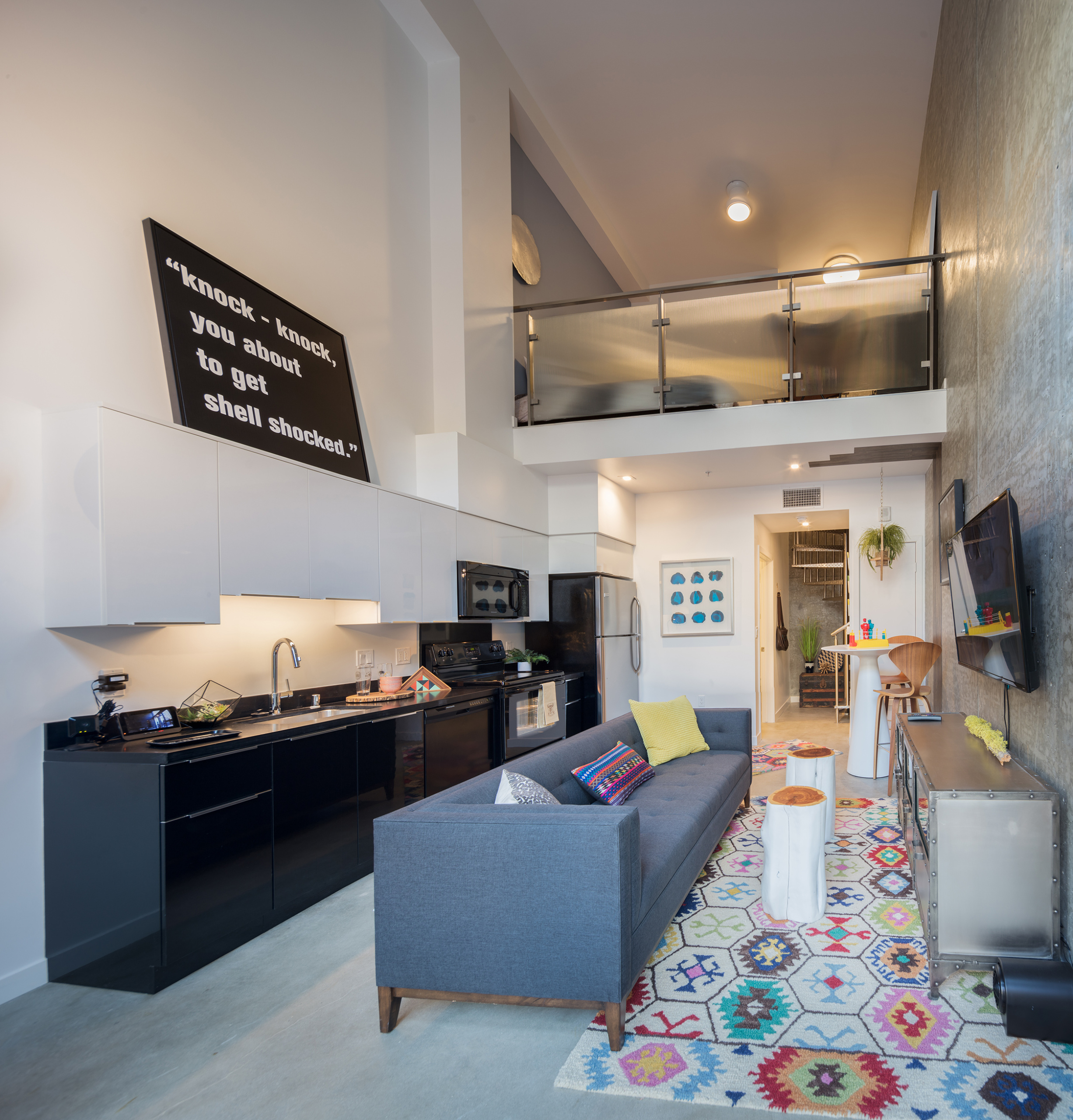 The building is comprised of 197 residential units; a mixture of studios, 1 and 2 bedroom apartments, and 3-bedroom ground floor townhomes with private patios. Above-ground residences are stepped back, providing terraces and balconies for each unit. The adjoining community kitchen/lounge and pool are flanked by an outdoor picnic space and multiple gas grills on one end, and a massive green wall on the other.
