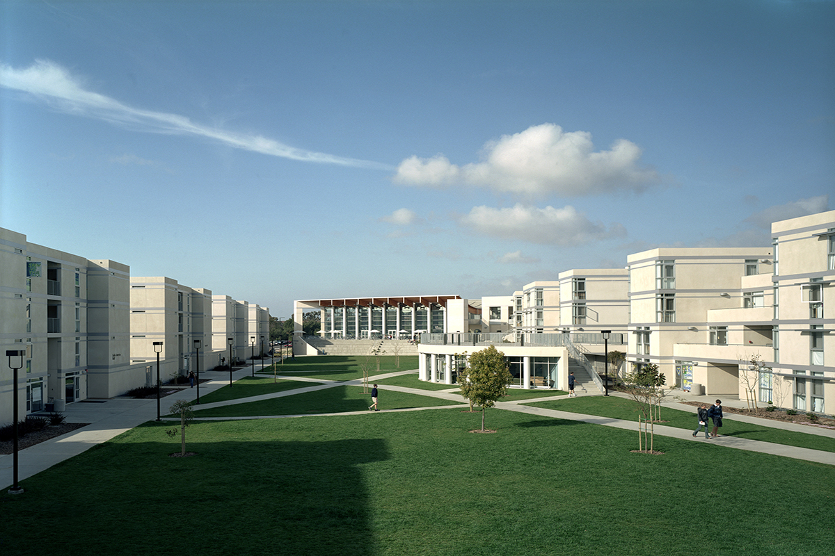 The design includes 21 buildings, including housing and dining facilities, meeting rooms, academic offices, and a parking structure. The college is organized around a series of large public outdoor spaces, terraces, and promenades that distinguish the character of the project. Many of the new buildings are defined by balconies and terraces that take advantage of San Diego’s mild climate and the site’s panoramic ocean views.