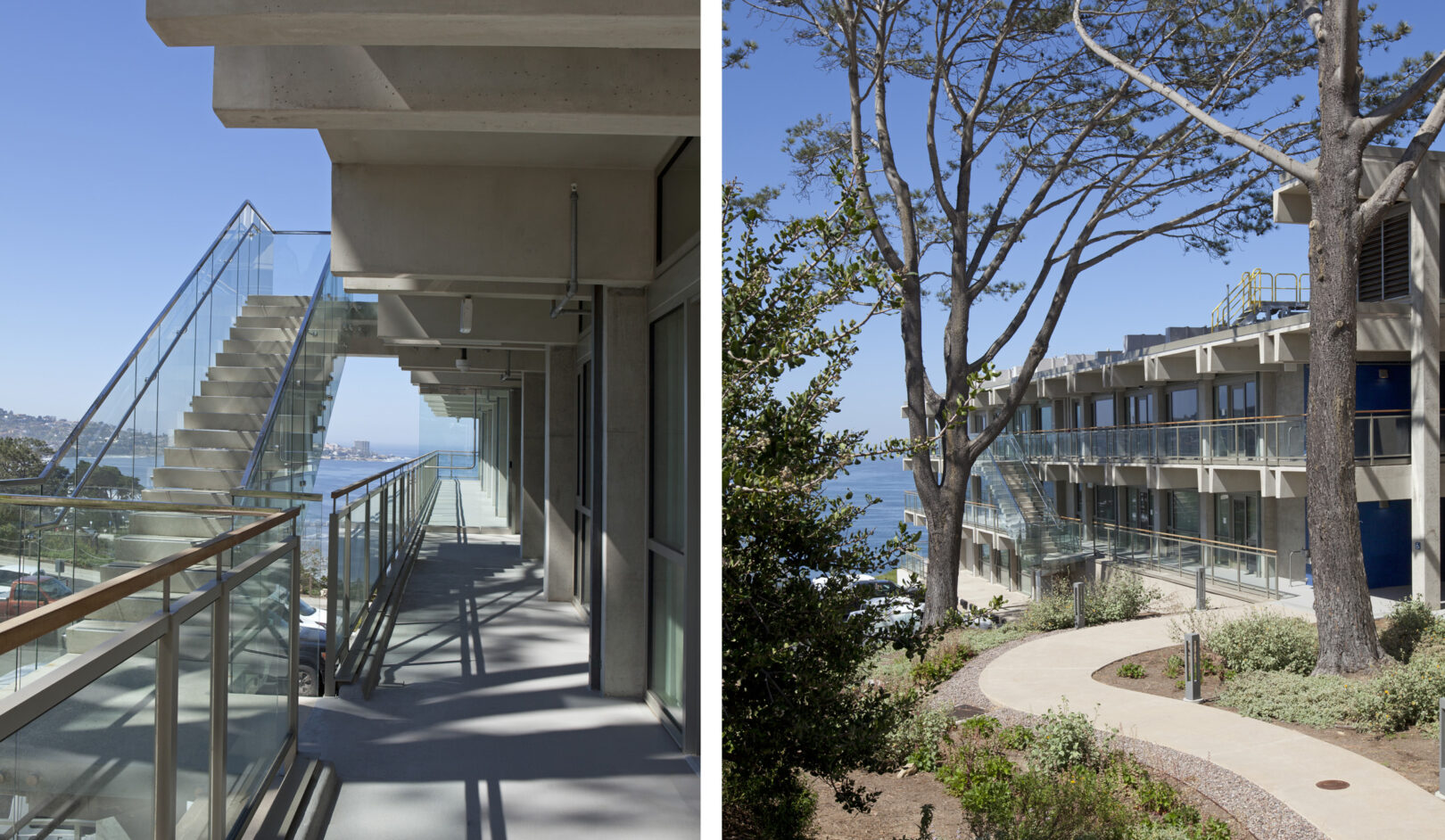 The Marine Conservation and Technology Facility at UC San Diego’s Scripps Institution of Oceanography (SIO), perched on a high bluff 200-feet above the ocean, is home to the Center for Marine Biodiversity and Conservation. The project includes an addition and adaptive re-use of an existing building. Originally constructed in the 1960’s, the existing building is the single remaining structure of an original complex of four designed by renowned San Diego firm Frank L. Hope and Associates. The other three buildings were razed due to concerns about bluff stability and the hillside was reinforced in 2014.