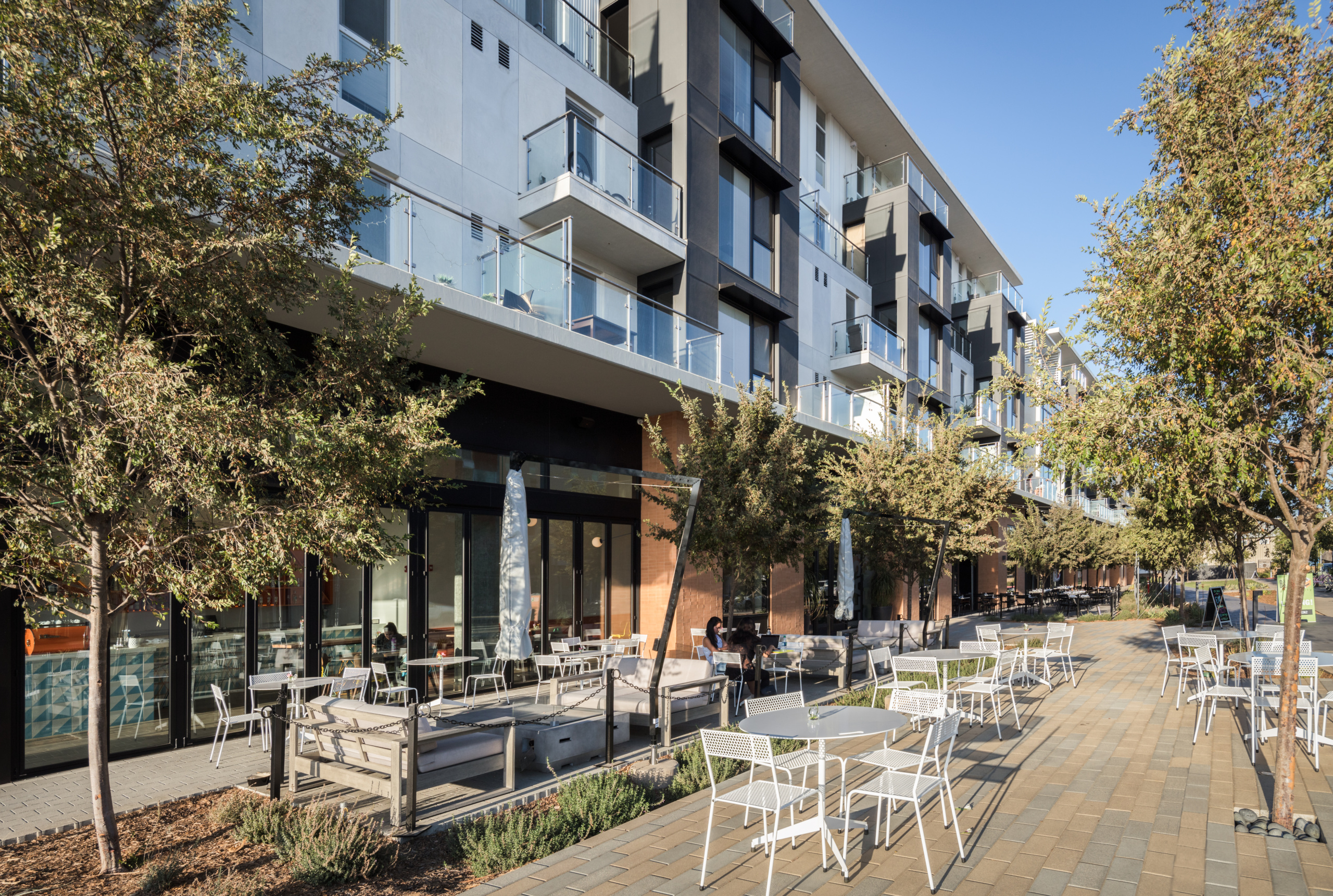 SRA-designed structures at North City include the QUAD Student Housing Phases I & Phase II (2015), Block C mixed-use market-rate housing (2016), Block C North market-rate housing (2019), the Extended Learning Building and Bridge (2019), and North Commons Student Housing (2022).