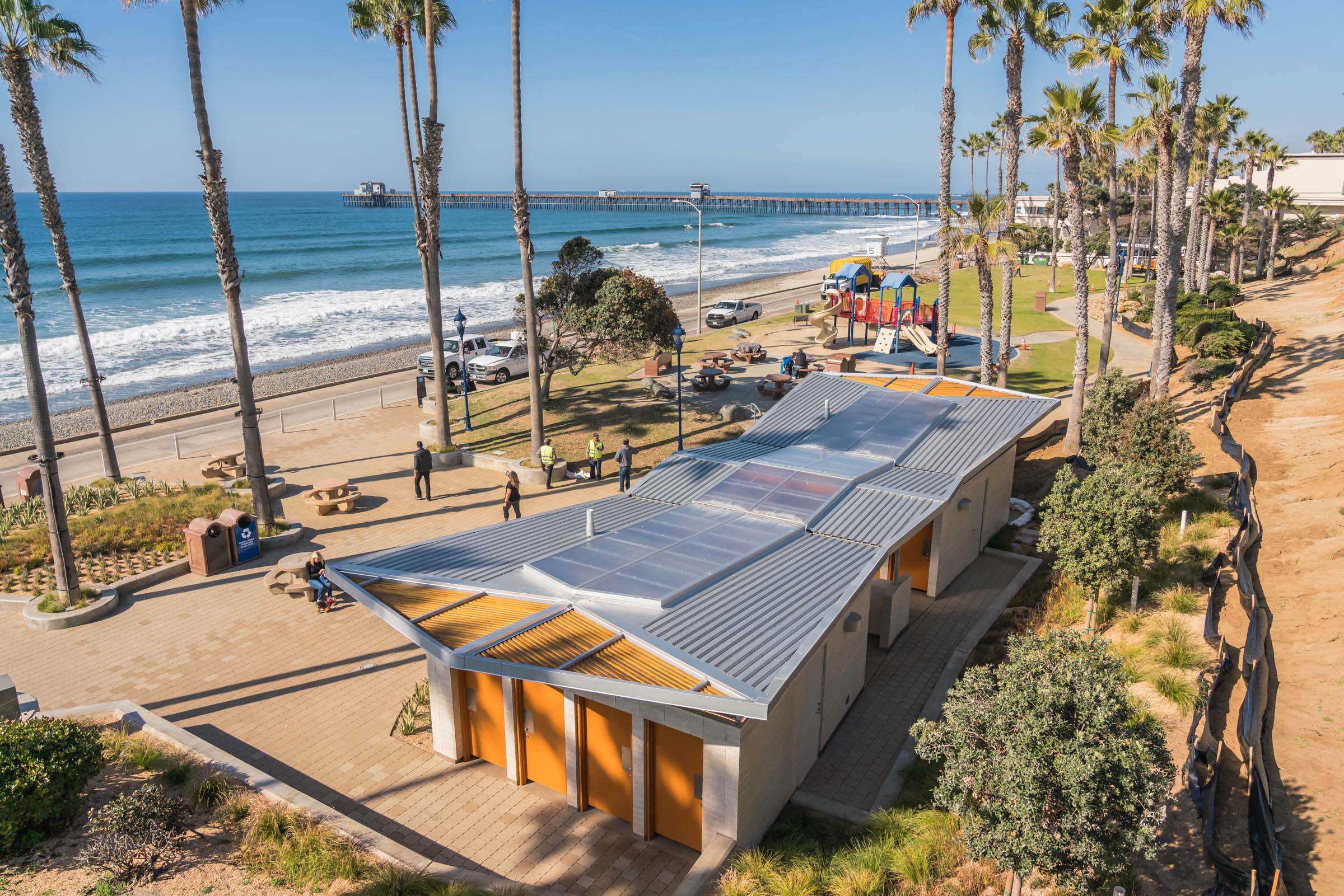 Located south of the pier along the Oceanside Strand, the Tyson Street Beachfront Improvement project revitalizes an outdated public restroom and the surrounding area to support the neighboring public park and the growing traffic around Oceanside’s downtown beach area.
