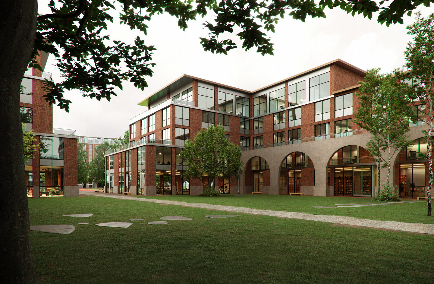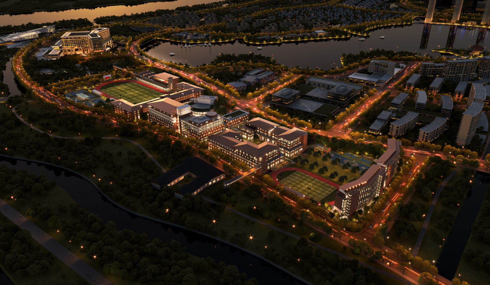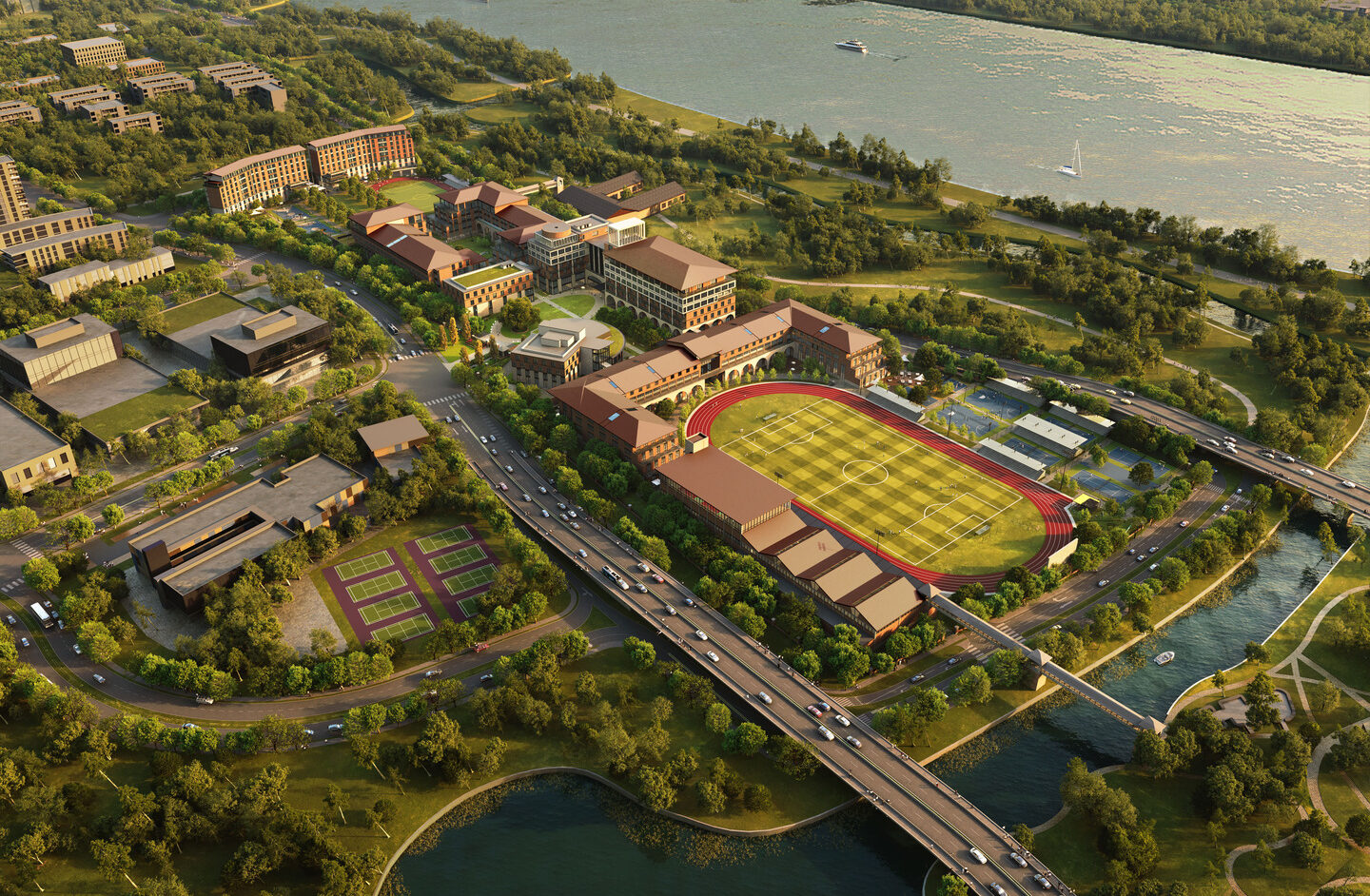 The Zizhu Bilingual School Master Plan looks to create a new academic facility for grades 1 – 12, on-site boarding facilities, below grade parking, and a variety of sports facilities nearly 110,000 square-meters of undeveloped land. Located within the Zizhu Purple Bay neighborhood, the school is envisioned as a complete living and learning environment that supports rigorous academic development, fosters a connection to the outdoor environment, and celebrates artistic and athletic pursuits. Taking inspiration from historic St John’s University, this design centers around a rigorous academic culture while the concept includes generous allocation of “green spaces” that foster play, connection to the outdoor environment, and athletic pursuits. Surrounded by Orchid Lake Ecological Area and waterways, as well as a verdant equestrian greenbelt, this concept for Zizhu Bilingual School seeks to create both a physical and inspirational connection to the environment, encouraging deep appreciation for the planet’s ecosystems while supporting overall health and wellness of students, faculty, and staff.