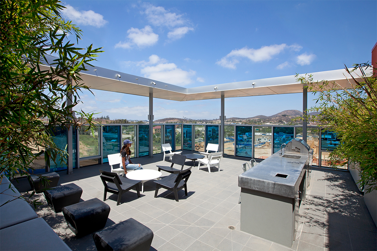 Phase 2 is the final segment of The QUAD, a mixed-use student housing project that is part of the North City Master Plan. 64 units, 302 beds and 16,000 SF of retail space were added to the complex, located across the street from California State University San Marcos. The building shares outdoor amenities with five additional buildings in the development while maintaining its own distinct identity.