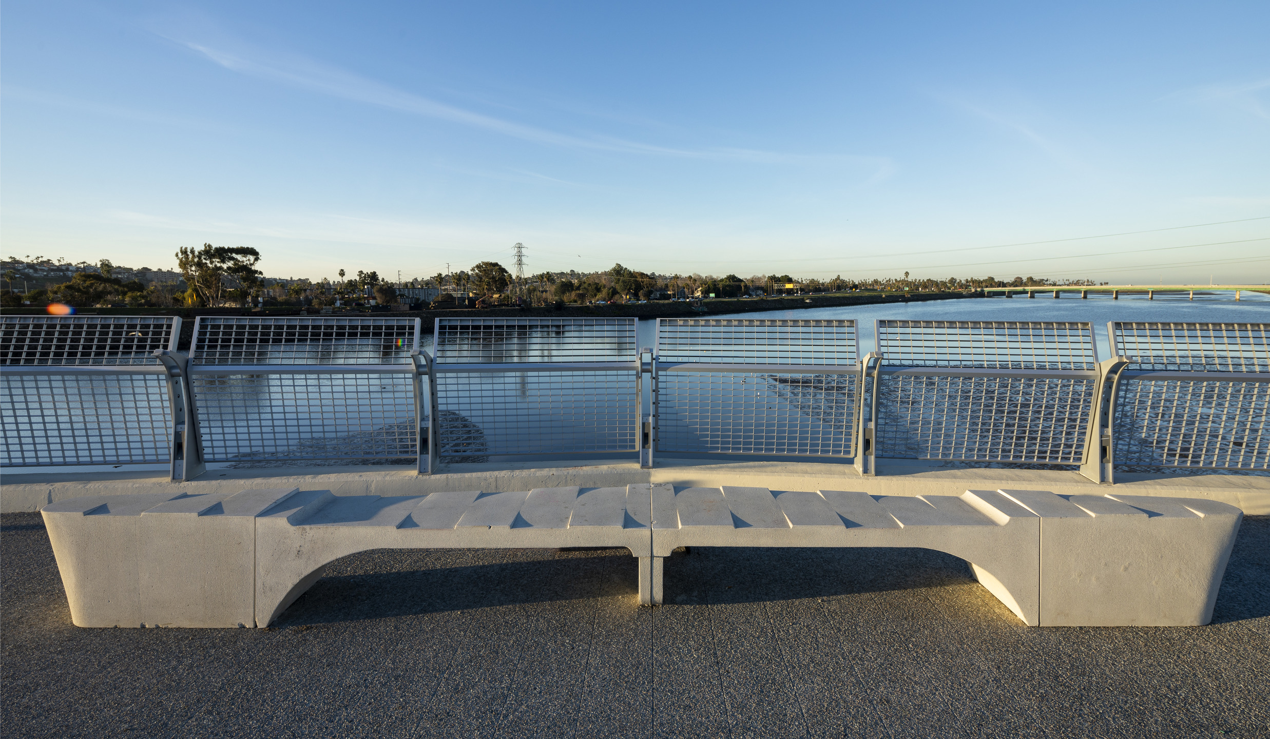 Designed to be viewed from above and below, all user experiences were taken into consideration. Pedestrians and bikers traveling under the bridge witness a visual display of sculptural form as they journey below. Above, bespoke benches align with scenic overlook alcoves protruding over the bay. Ample space is provided for bike and pedestrian lanes, with two-directional allotments on either side of the bridge.