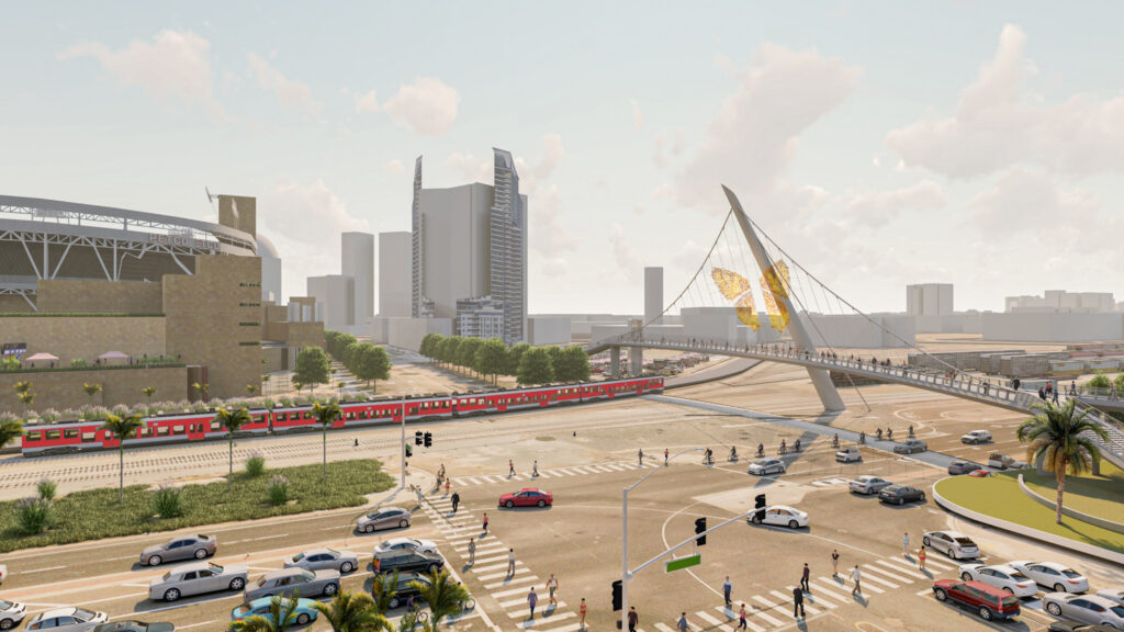 Safdie Rabines Architects is involved in Bay to Park Paseo through the route’s flagship art installation, a large-scale Hermes Copper Butterfly to be placed atop the Harbor Drive Pedestrian Bridge. While this design is still in the works, once it is installed the butterfly will signify the beginning of the journey for the new Bay to Park Paseo – and will serve to bring awareness to this native butterfly whose populations and habitats have become threatened due to wildfire, drought, and climate change.